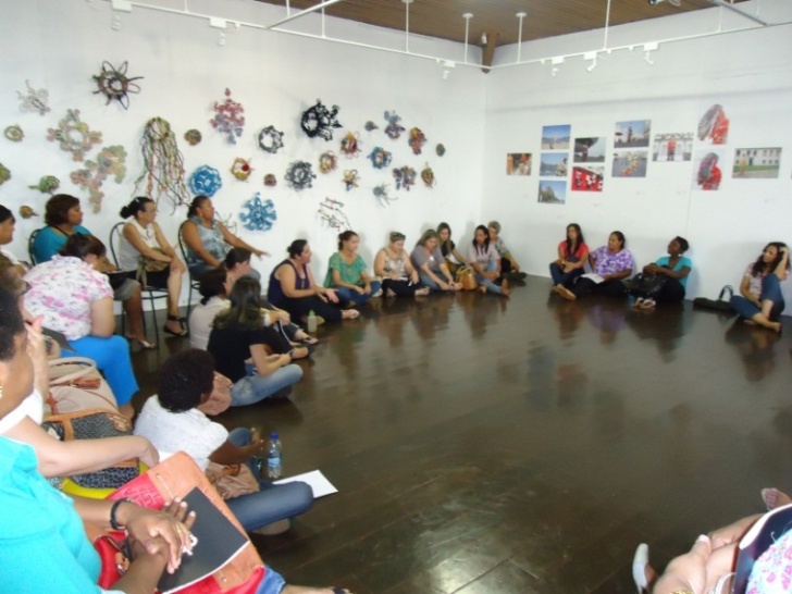 A reflexão conceitual se constitui pelo estudo dialogado sobre a arte, sua importância na sociedade e na formação humana. Buscou-se nesse processo mediar a experiência cotidiana dos professores com a arte, seus gostos e vivencias com os conhecimentos sistematizados. Nessa a Proposta Triangular foi eixo central para ampliar as experiências e vivencia artística dos professores professoras e das crianças. Para tanto, realizou-se visitas a museus, apresentação de filmes, clips, debates sobre as manifestações da cultura popular local e outros, assim como o trabalho verticalizado com os grandes Mestres da pintura – por meio da apreciação de imagens e estudo da história da arte e vivência do fazer artístico.