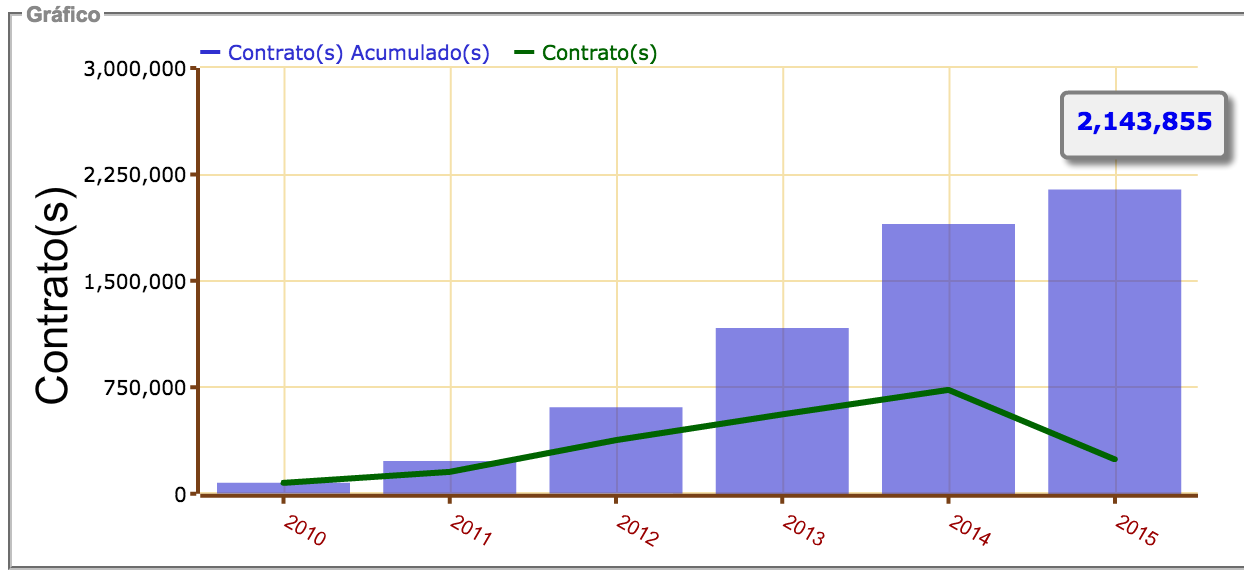 | 2012 | 2.164.688.457,00 | 3.258.530.248,23 | 5.506.362.345,97 | 8.288.790.104,66 | 150,53 |