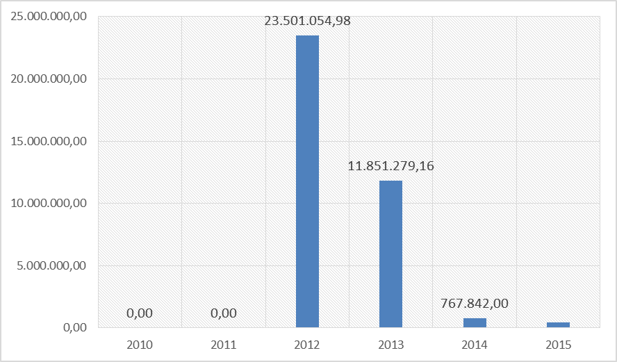 Fonte: Elaboração própria com base na execução da LDO (valores pagos, dados reais, 2014 - ação 20RU).