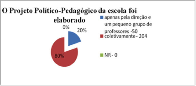 A importância de pensar e projetar o trabalho da escola na dimensão coletiva e de favorecer as diversas aprendizagens foi um dos dados preponderantes nesse questionamento. Contudo, os dados apresentaram um percentual de 20% que ainda estavam limitados à elaboração do Projeto Político Pedagógico apenas nas mãos do corpo diretivo da escola.