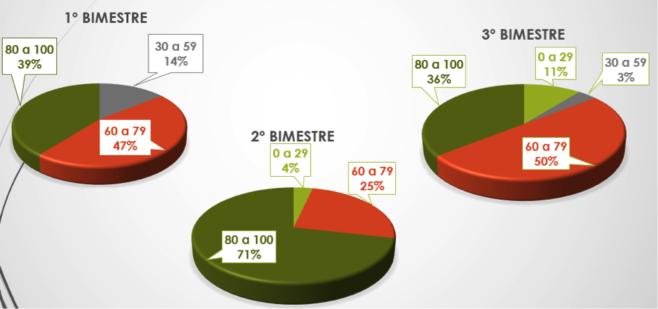 Nesses encontros bimestrais são apresentados os resultados acadêmicos da turma, por disciplina, de forma a identificar os fatores que promoveram a aprendizagem ou aqueles que representaram pontos de atenção para o rendimento escolar satisfatório, com destaque para os aspectos: