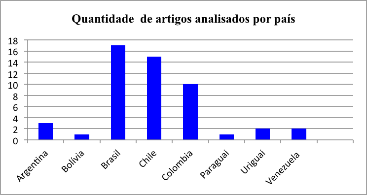 No entanto, a maior parte dos trabalhos analisados focalizam a acreditação de cursos no contexto das políticas nacionais, sendo que o processo realizado no Chile é o principal foco de análise, uma vez que 19 artigos discutem a acreditação de cursos nesse país. Além da política chilena, a política colombiana também é destacada em 12 artigos analisados. Ressalta-se, no entanto, que dos países que participam do ARCU-SUL, apenas a acreditação na Venezuela não foi objeto de nenhum dos artigos analisados.